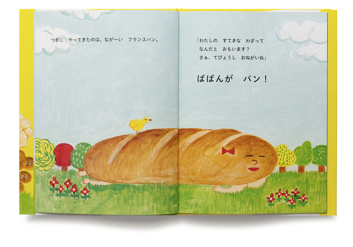 ここは不思議なパンの国。「ぱぱんがパン! 」というと、空を飛んだりクリームがのびたり、パンたちが楽しい技を見せてくれる。