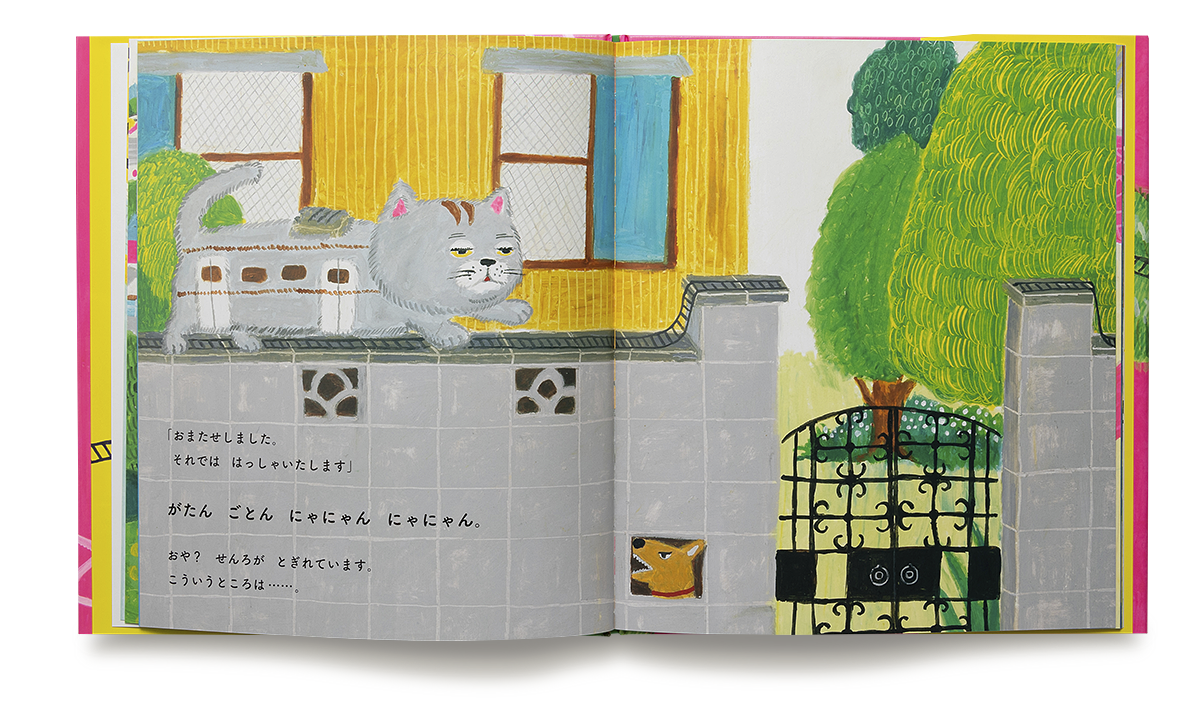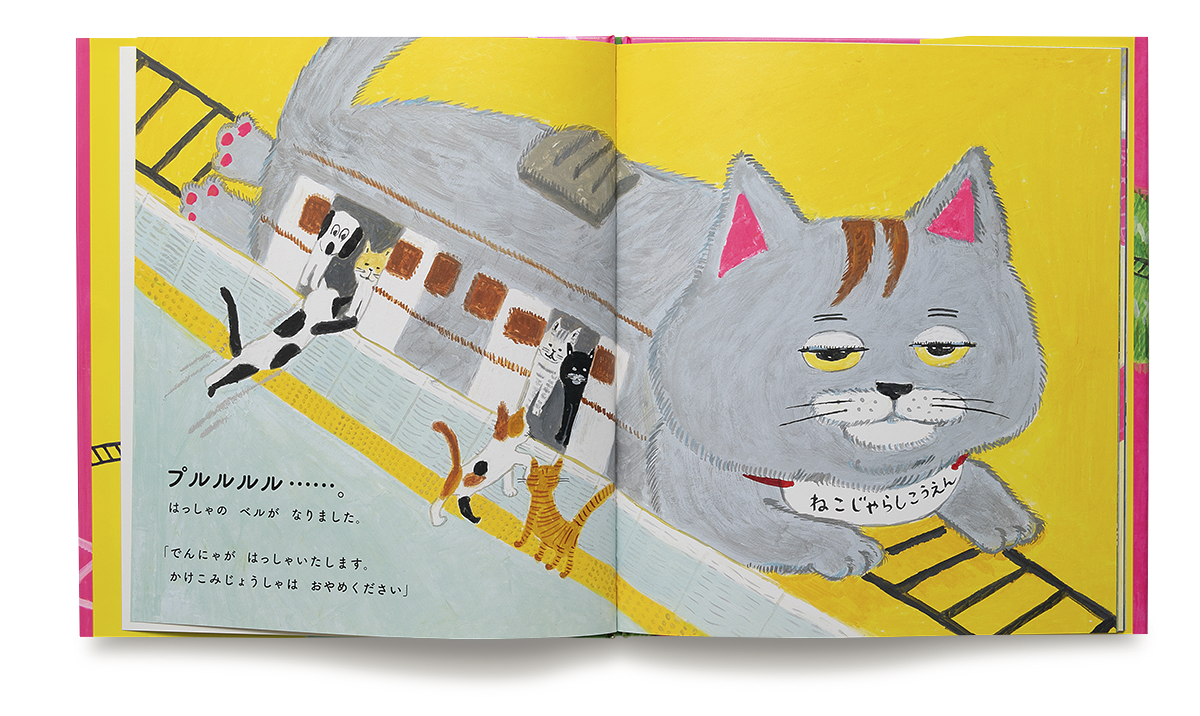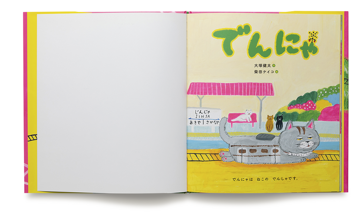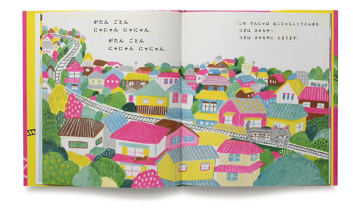 でんにゃはねこの電車。がたんごとん、にゃにゃんにゃにゃん。魚屋さんでごはんを食べたり、屋根の上で昼寝したり、ねずみを追いかけたりと、寄り道ばかり。なかなか目的地に到着しません。『おにゃけ』のコンビによる、かわいいユーモアえほん。