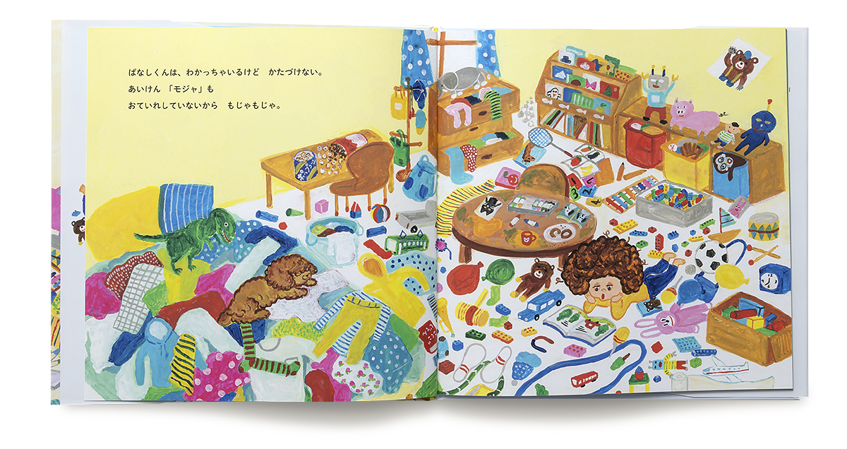 「ぱなしくん」は、かたづけが苦手な男の子。なんでもそのままにしちゃうからぱなしくんって呼ばれています。ぱなしくんは、わかっちゃいるけどかたづけない。愛犬「モジャ」もお手入れしていないからもじゃもじゃ。
