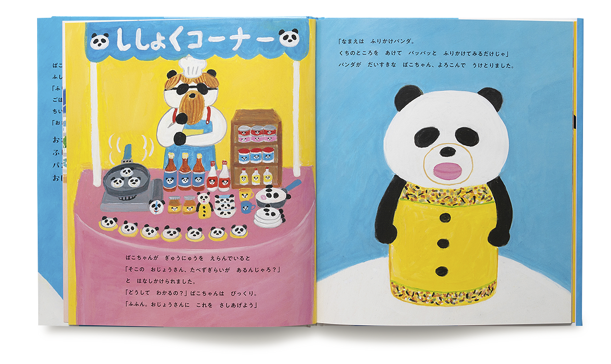 食べものの好き嫌いが多いぱこちゃん。ある日、スーパーでもらった「ふりかけパンダ」をごはんにかけると、もこ、もこ、もこ……ぽんっ! 小さなパンダの「おさじ」があらわれました。ふりかけを料理にかけて、おさじが教えた呪文を唱えると、いつもの料理がパンダ料理に大変身! でも、守らないといけない約束があって――。
