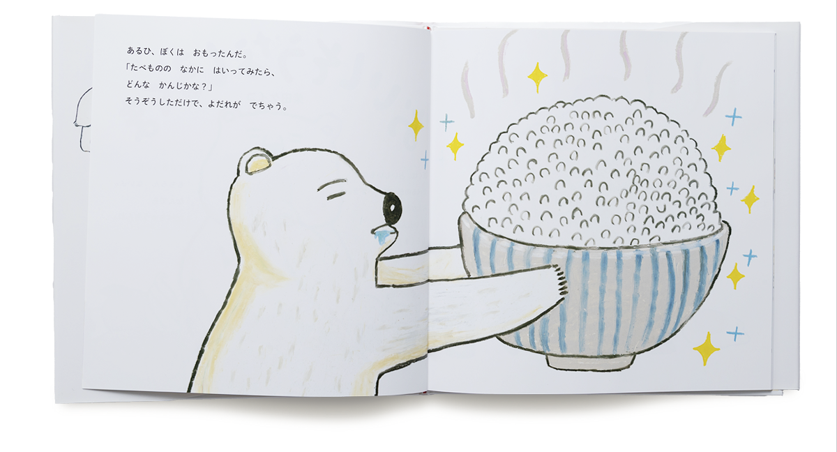 ある日、ぼくはおもったんだ。「たべものの中にはいってみたら、どんな感じかな?」そうぞうしただけで、よだれがでちゃう…。