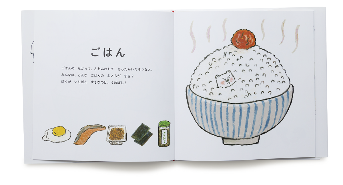 ぼくは、おいしいものをたべるのがだ~いすき。みんなから「くいしんぼうのしろくま」っていわれている。すききらいはもちろんないよ。