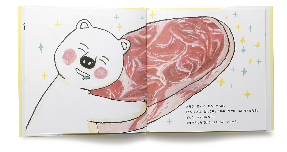 ぼくは、おにくをたべるのがだ~いすき。おおきなおにくだって、ペロリとたべちゃうもんね。